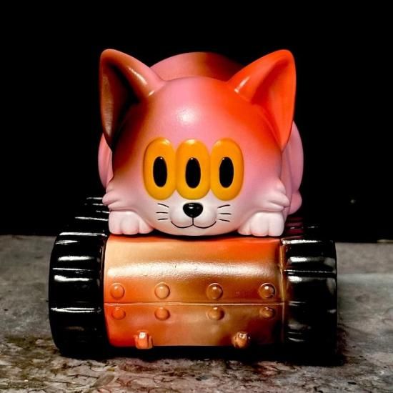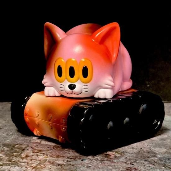 アートジャンキーのオリジナルキャラクター「カームキャット」シリーズ!戦車の上でLock on!信頼の日本製!獲物を狙って体を丸める猫を表現。